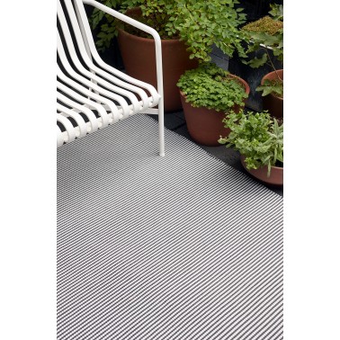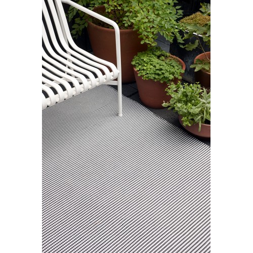 Kusový koberec River in/out má jemné proužky a je vhodný i pro náročné prostředí včetně venkovního použití na terase nebo balkoně. Velmi dobře poslouží také v koupelně, kuchyni nebo v chodbě, kde klasické koberce trpí vlhkostí a častějším znečištěním.