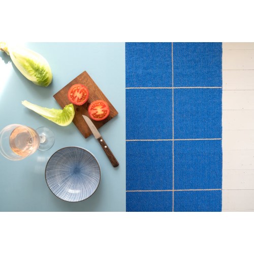 Pletený kusový koberec Ruth s geometrickým vzorem mřížky a inverzními barvami na rubové straně. Koberec je vhodný i pro náročné prostředí včetně venkovního použití na terase nebo balkoně. Velmi dobře poslouží také v koupelně, kuchyni nebo v chodbě, kde klasické koberce trpí vlhkostí a častějším znečištěním.